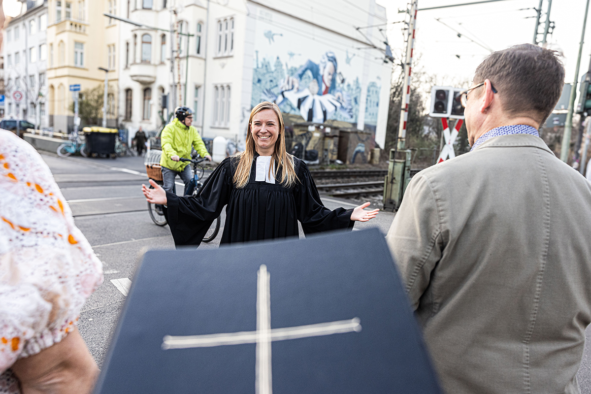 Zwischen Innenstadt und Hofgarten, zwischen Rhein und Hauptbahnhof liegt der X-tra Platz – direkt vor der Evangelischen Kreuzkirche. Dieser besondere Ort verbindet urbanes Leben mit Momenten der Ruhe und eignet sich in besonderer Weise für eine Segensfeier mitten in der Stadt.